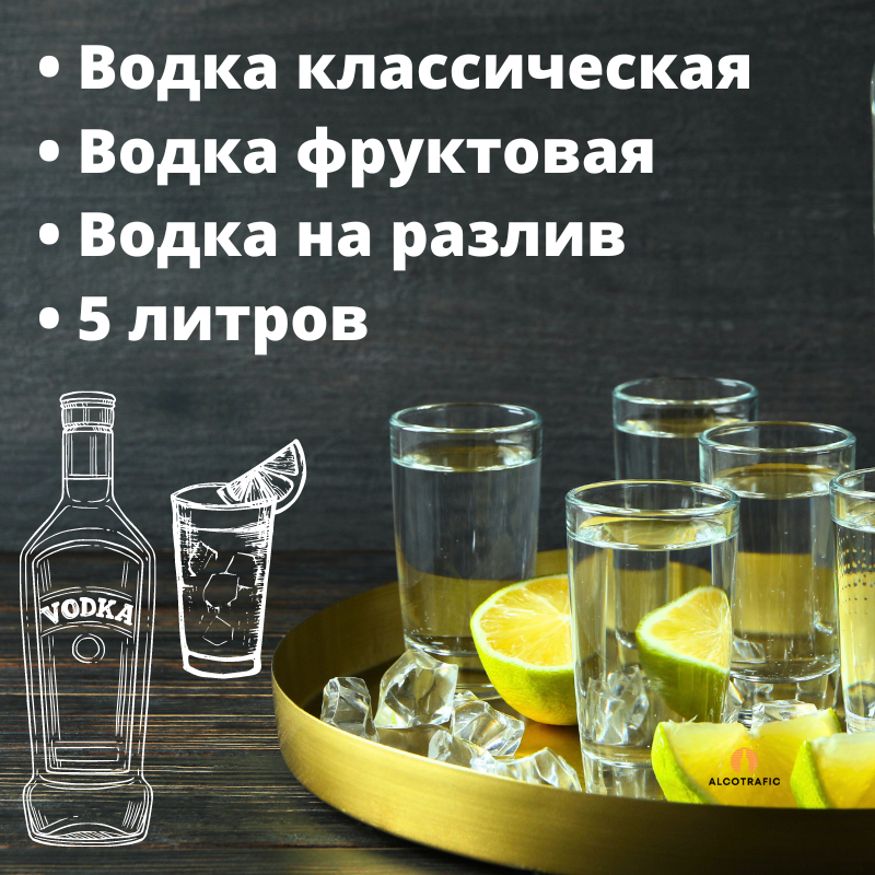 Покупайте водку на разлив 5 литров в интернет-магазине "АлкоТрафик" — это просто, удобно и выгодно. Мы ценим каждого клиента и гарантируем качество, которое приятно удивит вас и ваших гостей.